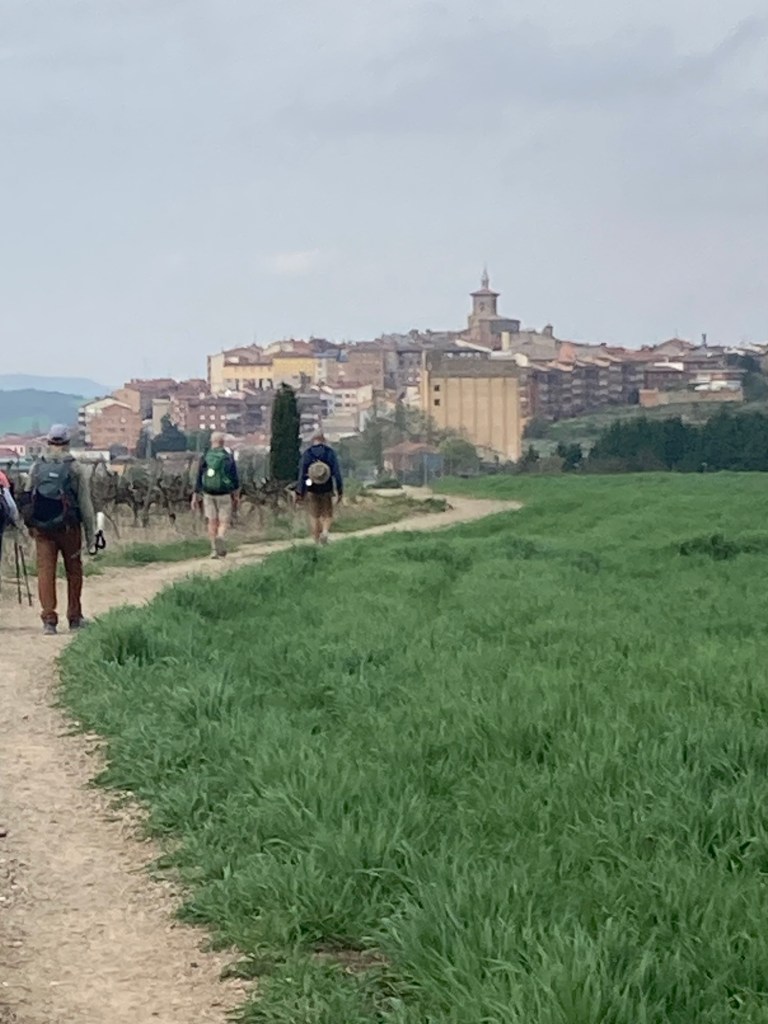 16 mile walk today. I felt good. I’ve left the Navarro region and I’m now in Rioja. I suspect that I’ll be seeing more vineyard while I’m walking. Today marks my one week on the Camino. I’ve got somewhere around 100 miles behind me…another 400 to go!! It’s been quite a week. I’m feeling ok walking and glad I’m doing this, but it’s not without periodic lingering doubts about whether or not this was worth the fatigue and sore legs. I’m still in it and still feel committed to finish. The positives are out weighing the second thoughts. I’m having dinner tonight with Enrique, my Camino amigo from Madrid. He’s leaving the Camino tomorrow to return to work. He’s been an enjoyable comrade to have on the Camino with me. It’s raining now. It will stop in the morning and start up again mid-afternoon. I hope to leave early tomorrow morning to beat the rain. Tomorrow is a 17 mile day.