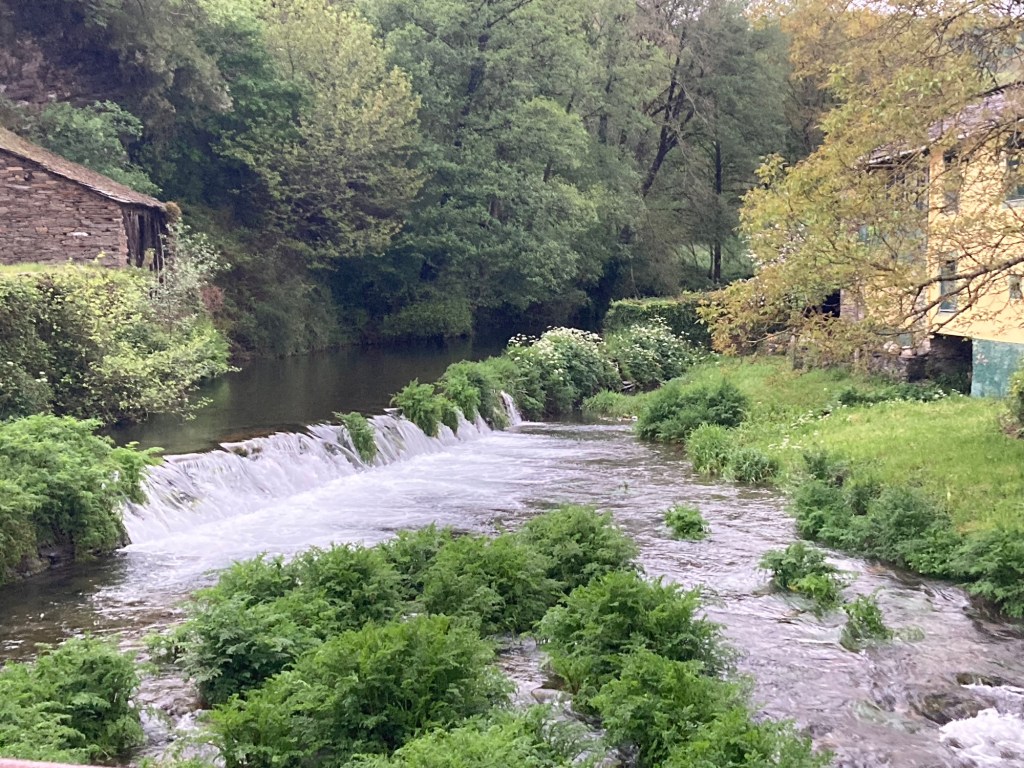 May 4th. The Camino trail out of Triacasteli this morning offered two options, the shorter, more direct route to our next destination (about 14 miles) or an alternative route, that would detour you to the Monastery at Samos, a 6th century active Benedictine Monastery, one of the oldest in Spain. (walking about 19-20 miles). I wanted to take the shorter route, but missed the turn and ended up on the alternative route. It was so beautiful and quiet. For 3 1/2 hours, I only saw 3 other pilgrims. Beautiful wooded paths, tiny villages, all sorts of streams and rivers with rushing water and waterfalls. It added at least another 5 miles to my walk, but I was happy I did it. The monastery was only offering one tour at 12 noon. It is suppose to be very beautiful, but I couldn’t stay around that long, so I took a few pictures and headed out. I got to my Alberque around 2pm, after my nearly 20 mile walk…tired but happy about the days walk. Galicia is so beautiful. It’s lush and varied in topography, other pilgrims say that it’s similar to Wales, others say parts of Switzerland…I’m sure other comparisons can be made. In the end, it’s Galicia Spain…and it’s beautiful in its own right. A much shorter walk tomorrow. No deviations planned.
