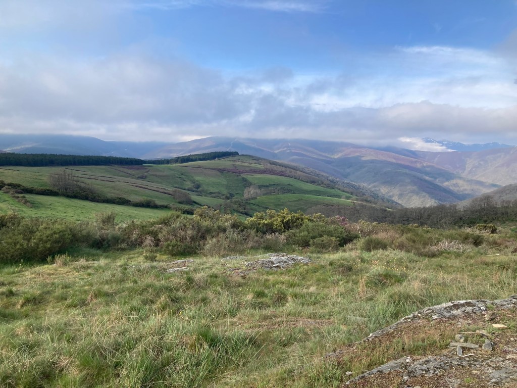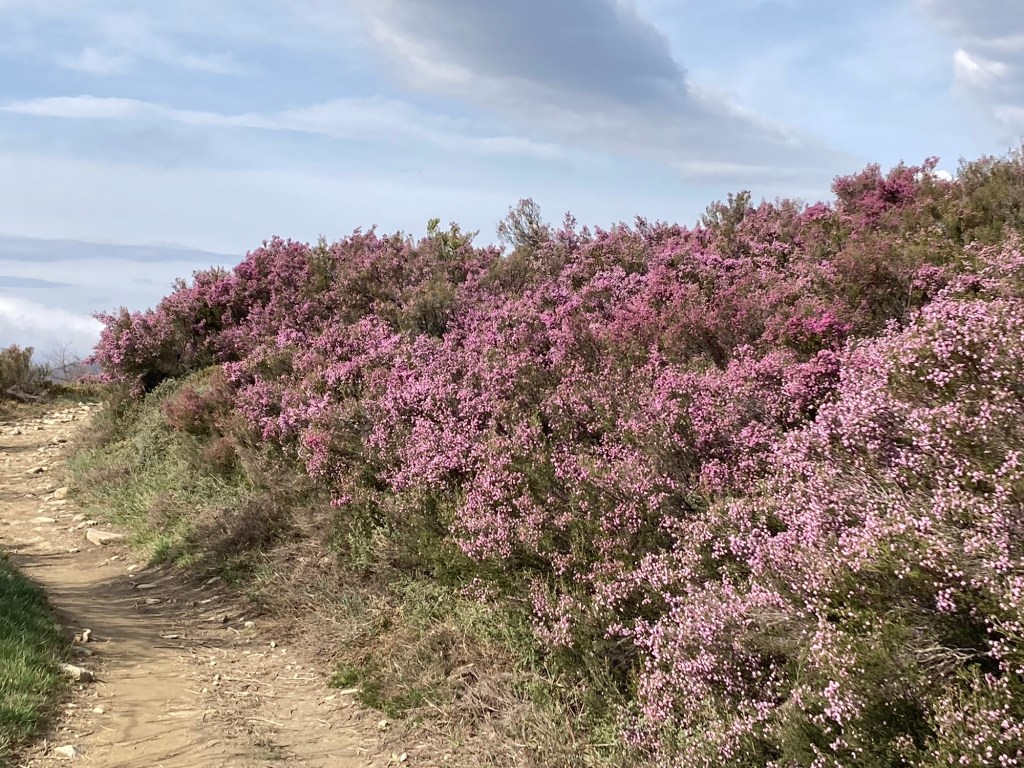 Candidly, I was very anxious about today’s walk. My last full-mountain walk did not go well (see page 1, in the Pyrenees!). I’m not a big fan of walking up. Adding to the fact that this was a highest point on the Camino, and with my shin splints and tendinitis…you get the picture. As it turned out, I managed the ascent very well. It was actually enjoyable. The weather was perfect. It was the descent that nearly killed me! The path was rock strewn, sometimes barely wide enough to pass, sometimes only a gully from previous rains. The path was trying at every turn to twist, sprain or break my ankle! It took me hours to get down. Having said all that negative stuff, the scenery was breathtaking. Miles and miles of spring flowers and bushes in bloom…purple heather, yellow and white scotch broom. The high mountain ranges in the distance. At lower altitudes, the wild lavender was also blooming. And other flowers that I have no idea what they were. It was a long and grueling day. I’m in a nice alberque in a nice little village. I’m heading out now to find some dinner.