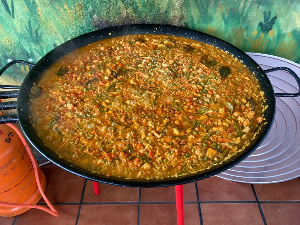 I’m in a wonderful alberque tonight. I’m rooming with a lovely couple from Aix-en-Provence in France, and a man from Portugal. I had dinner tonight in the alberque, sitting with a woman from Perth, Australia and a young man from Calle, Colombia. It was a great evening. A picture of our paella dinner is below. We shared stories of the Camino with our pictures and tales of the road. The couple from France did half of the Camino last year…St. Jean to Burgos. This year, they started in Burgos and will walk through to Santiago. Tomorrow’s another day and another walk. Life is good. My nephew James (the most knowing of these kind of things) said…”Danny…I don’t like my hikes until I’m two weeks into them. Today is my two week mark on the Camino. It was a good day….I hope James is right.