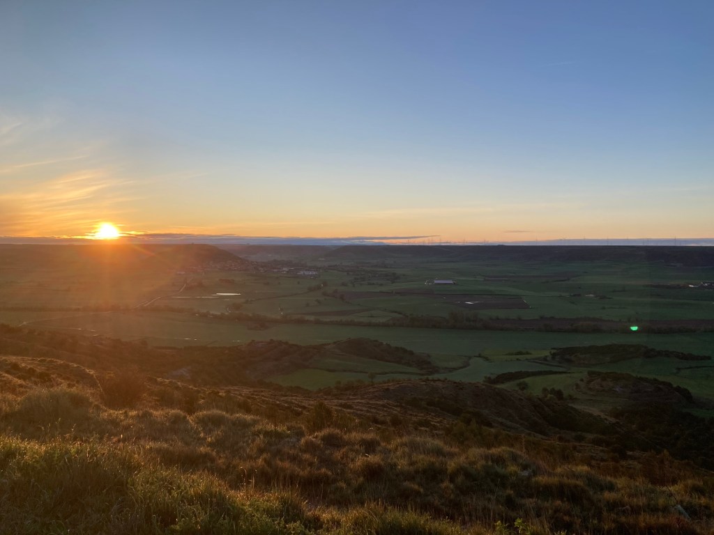 Easy walk today. 12 miles with no big hills to contend with. I am entering the area of Spain called the meseta…or plateau (probably from the Spanish for table…mesa). I will be in the meseta for the next 8+ days. It’s the largely empty land of wheat and grain fields. The villages are few and far apart, with no trees or streams/rivers. I’m told that this is the part of the Camino that is harder on your head (mentally) than on your feet. Other pilgrims say that this is where they’re able to solve their problems, decide their future and reconcile with their past. There are few distractions to intrude on your thougths. Some say that this part of the Camino is boring. Others find it enlightening. I’ll let you know.
